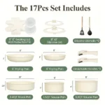 Upgrade your kitchen with this 17-Piece Ceramic Nonstick Pots and Pans Set, designed for healthier, hassle-free cooking. Featuring a premium non-toxic ceramic coating, this cookware ensures effortless food release and easy cleanup—no harmful chemicals, no peeling, and no sticking.