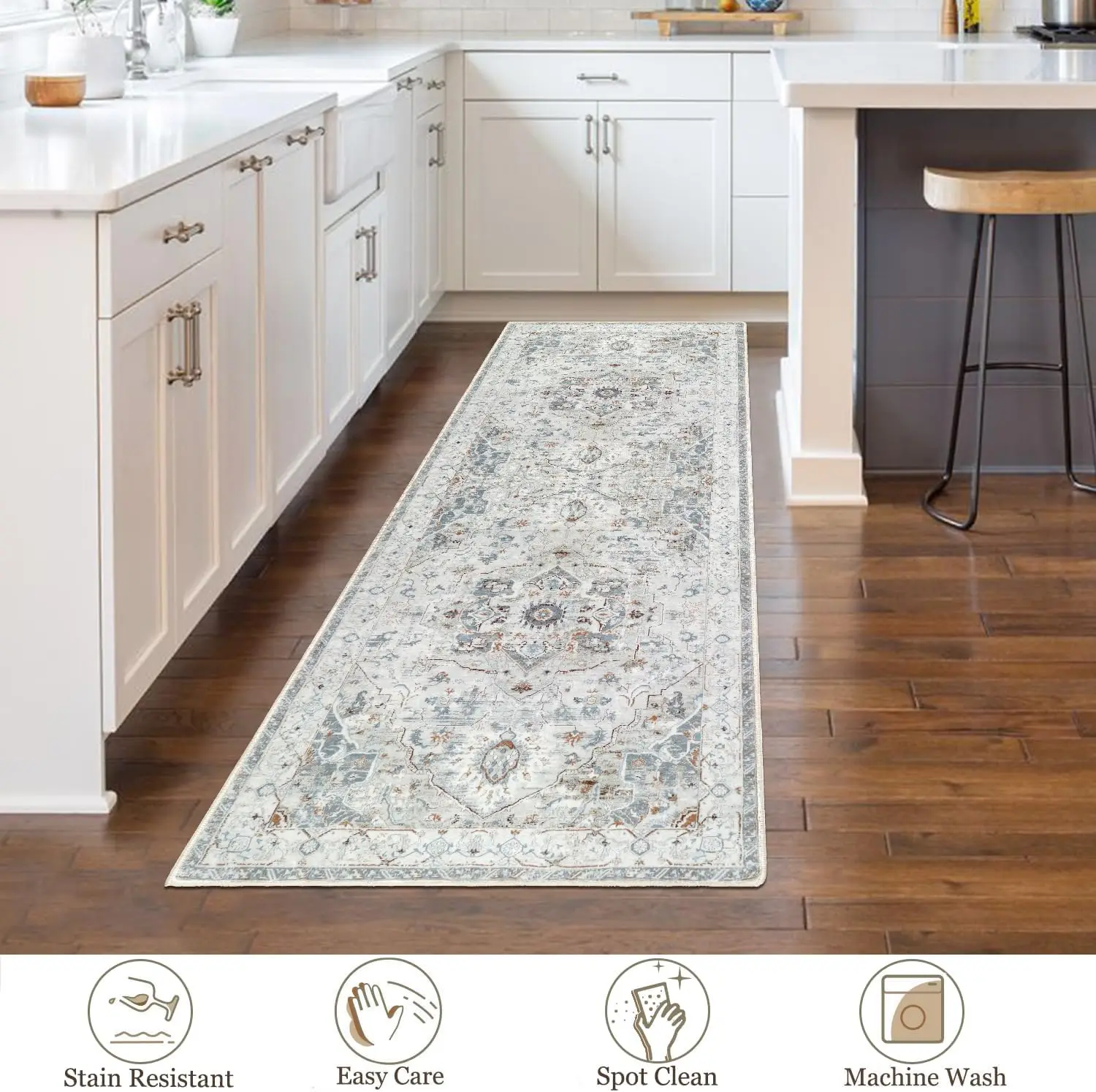 Safety Non Slip Runner Rug – With an upgraded cotton thread and TPR rubber backing, this rug offers strong anti-slip stability for safe use on wooden, marble, and tile floors for you and your pets.