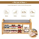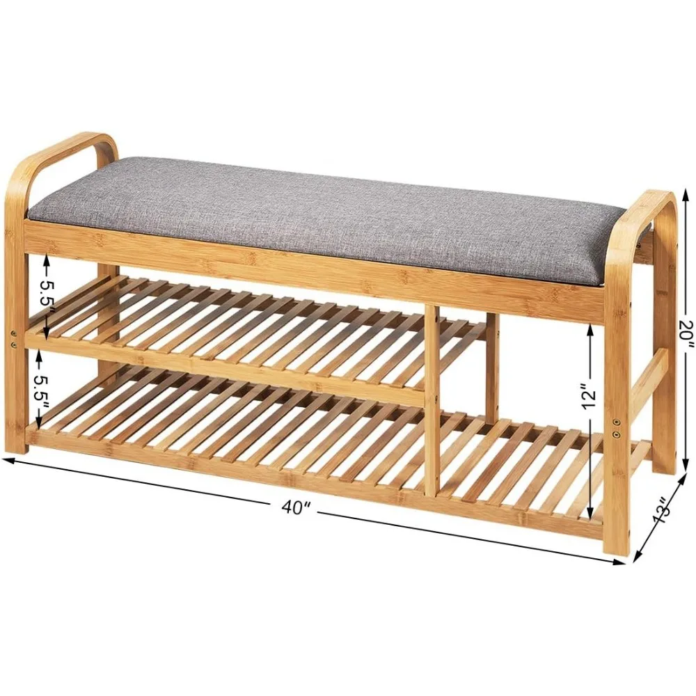 This bench is not just functional but also versatile, making it suitable for use in various settings such as bedrooms, living rooms, porches, and gyms. Its overall dimensions are 40″L x 13″W x 20″H. Constructed from high-quality bamboo, it is built to last with a sturdy and durable frame. The shelves are secured with galvanized steel screws, ensuring a stable structure that can support a weight of up to 330 lbs.