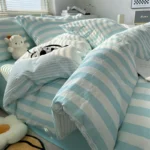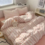 Fashion stripes pattern print on duvet cover, colors available tend to be neutral and can easily bring a relaxed, lived-in look to any room’s decoration especially the vintage style, modern luxury.