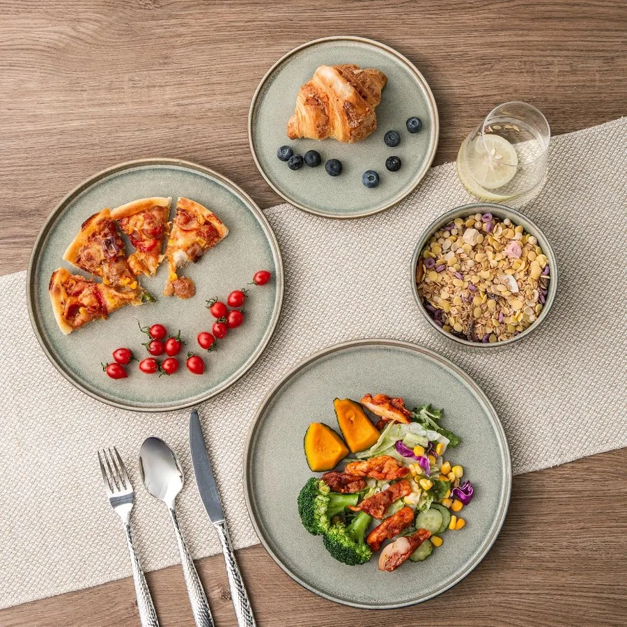 The set includes dinner plates, salad plates, and bowls—perfectly sized for serving full meals, sides, soups, and cereals. Ideal for family dinners or entertaining guests, this versatile collection blends durability, style, and functionality for a beautifully coordinated table setting.