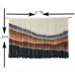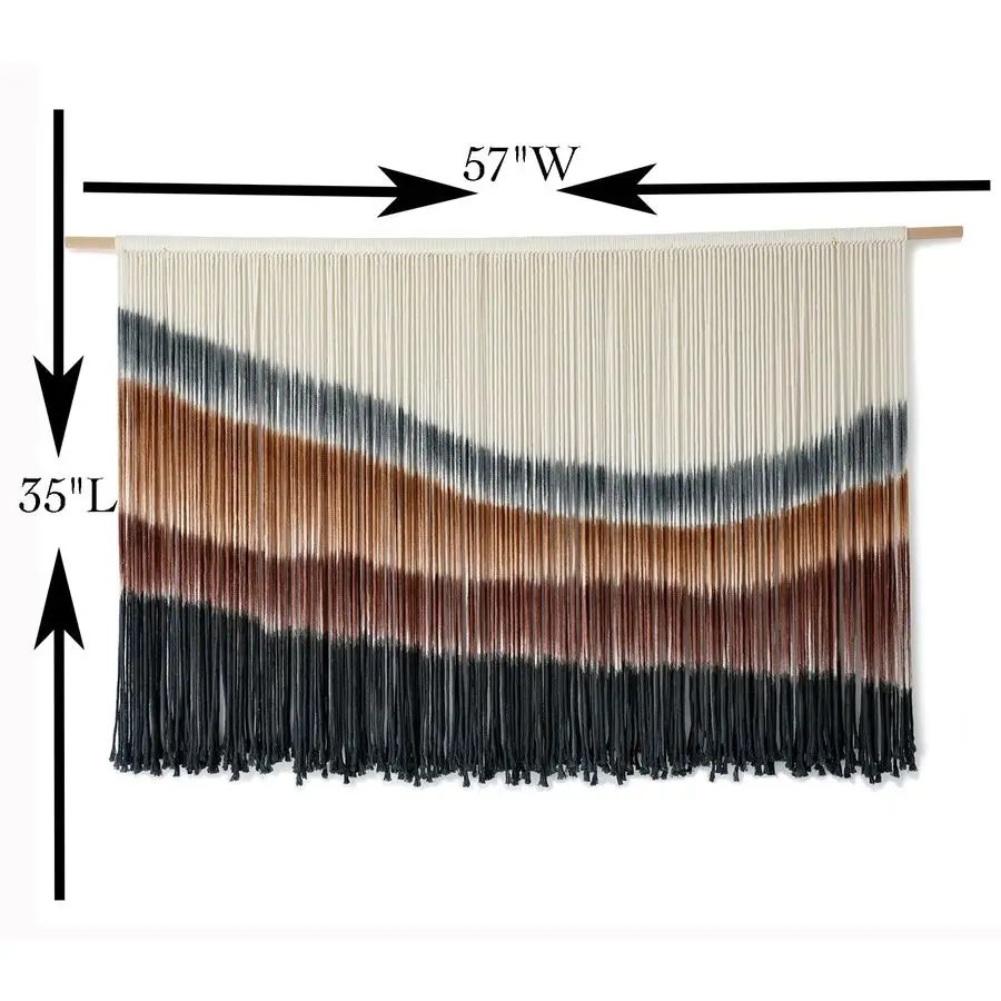 This eye-catching macramé wall hanging features a flowing, wave-inspired design in warm earthy tones and deep coastal hues. Measuring 57″ wide x 35″ long, it creates an instant statement above a bed, sofa, or entryway. The layered fringe adds texture and movement, giving your room that relaxed boho-meets-modern vibe.